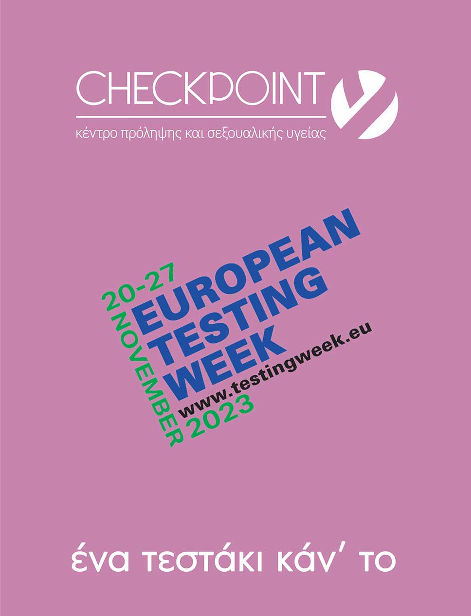 Ο Σύλλογος Οροθετικών Ελλάδας – Θετική Φωνή και τα Κέντρα Πρόληψης & Σεξουαλικής Υγείας Checkpoint σας προσκαλούν στις δράσεις τους για δωρεάν, εύκολη, γρήγορη, ανώνυμη εξέταση για HIV και ιογενείς ηπατίτιδες στο πλαίσιο της Ευρωπαϊκής Εβδομάδας Εξέτασης, από Δευτέρα 20 έως και Δευτέρα 27 Σεπτεμβρίου 2023.
