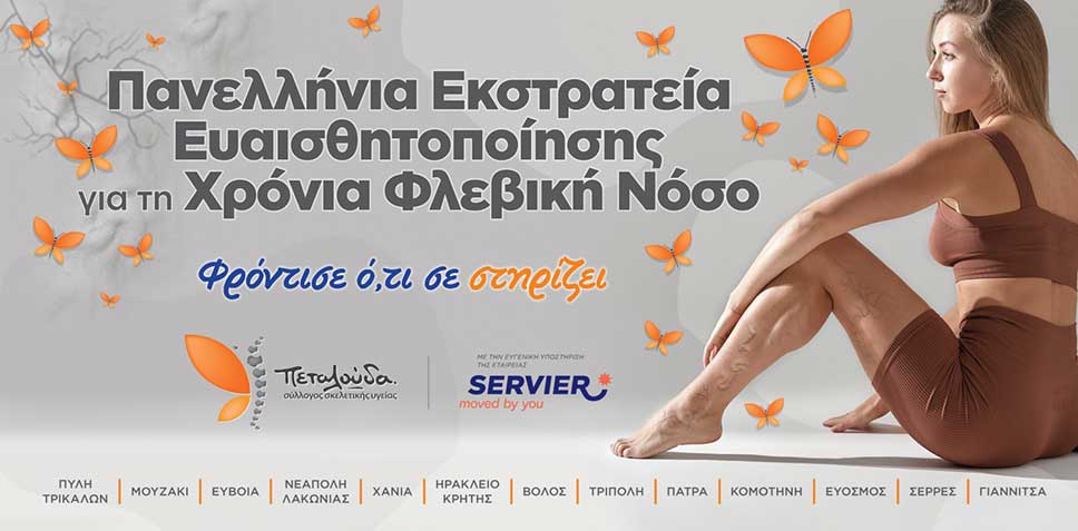 Ύστερα από τον πρώτο κύκλο της καμπάνιας που υλοποιήθηκε πέρυσι την άνοιξη κατά την οποία δόθηκε η ευκαιρία σε πάνω από 700 συμπολίτες μας πανελλαδικά να εξεταστούν για την χρόνια φλεβική νόσο και ανευρέθηκαν 234 περιστατικά με διαφορετικά στάδια εξέλιξης της νόσου, η «Πεταλούδα» ανακοινώνει την έναρξη του δεύτερου κύκλου της καμπάνιας πρόληψης και ευαισθητοποίησης του κοινού για την χρόνια φλεβική νόσο με τίτλο «Φρόντισε ό,τι σε στηρίζει!».