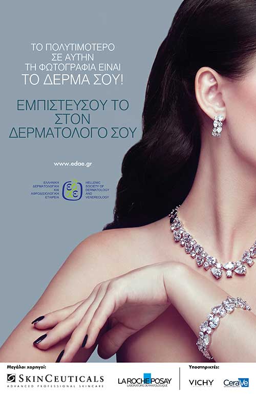 Και κλείνει τονίζοντας: Tο δέρμα μας είναι πολύτιμο. Γι’ αυτό, για οτιδήποτε αφορά στο δέρμα σου, εμπιστεύσου τον δερματολόγο σου.