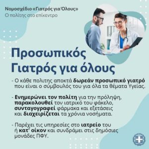 Ο προσωπικός γιατρός παρέχει ολοκληρωμένη και συνεχή φροντίδα στο άτομο, με σκοπό την πρόληψη των ασθενειών και την προαγωγή της υγείας.