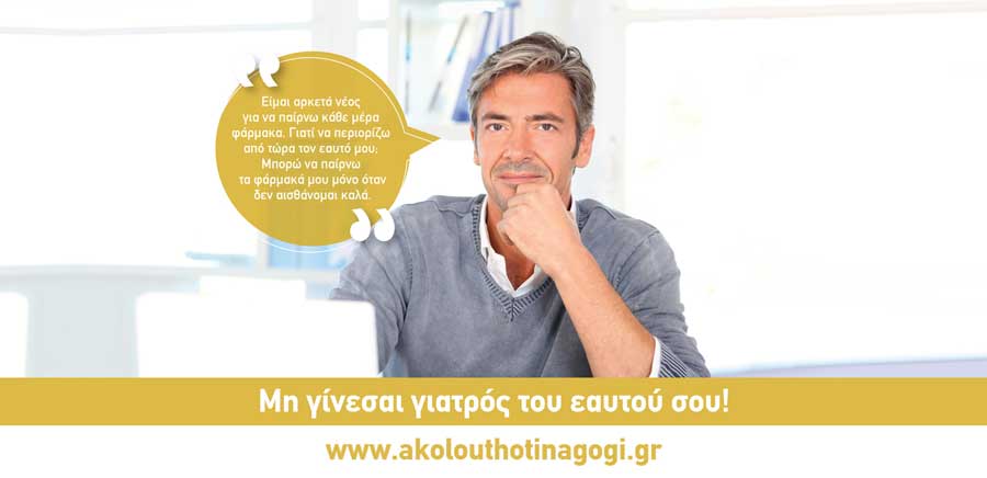 Στις παραπάνω φράσεις αντικατοπτρίζεται η νοοτροπία πολλών ασθενών που επιλέγουν να μην ακολουθήσουν σωστά τη φαρμακευτική αγωγή που έχει συστήσει ο γιατρός τους και να γίνουν οι ίδιοι… γιατροί του εαυτού τους! Αναγνωρίζοντας ότι η εσφαλμένη αυτή αντίληψη θέτει σε σοβαρό κίνδυνο την υγεία των ασθενών, η φαρμακευτική εταιρεία Servier Hellas υλοποιεί την Εκστρατεία Ευαισθητοποίησης για την Ορθή Χρήση Φαρμάκων με τίτλο «Μη γίνεσαι γιατρός του εαυτού σου!». Η εκστρατεία φέρει την αιγίδα της Ελληνικής Καρδιολογικής Εταιρείας και της Ελληνικής Εταιρείας Αθηροσκλήρωσης.