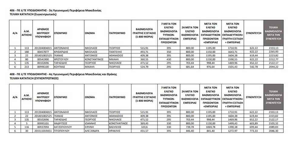 Για τις είκοσι μία (21) θέσεις Διοικητών και Υποδιοικητών των Υγειονομικών Περιφερειών εξετάστηκαν 60 ενστάσεις και από αυτές έξι (6) έγιναν δεκτές και οκτώ (8) εν μέρει δεκτές. Πραγματοποιήθηκαν συνολικά 107 συνεντεύξεις. Ειδικότερα, από 12/07/2024 έως 17/07/2024 (ημερομηνία ανάρτησης τριάδων ανά ΥΠΕ για τους Διοικητές) και από 23/07/2024 έως 02/08/2024 (ημερομηνία ανάρτησης εξάδων ανά ΥΠΕ για τους Υποδιοικητές)».