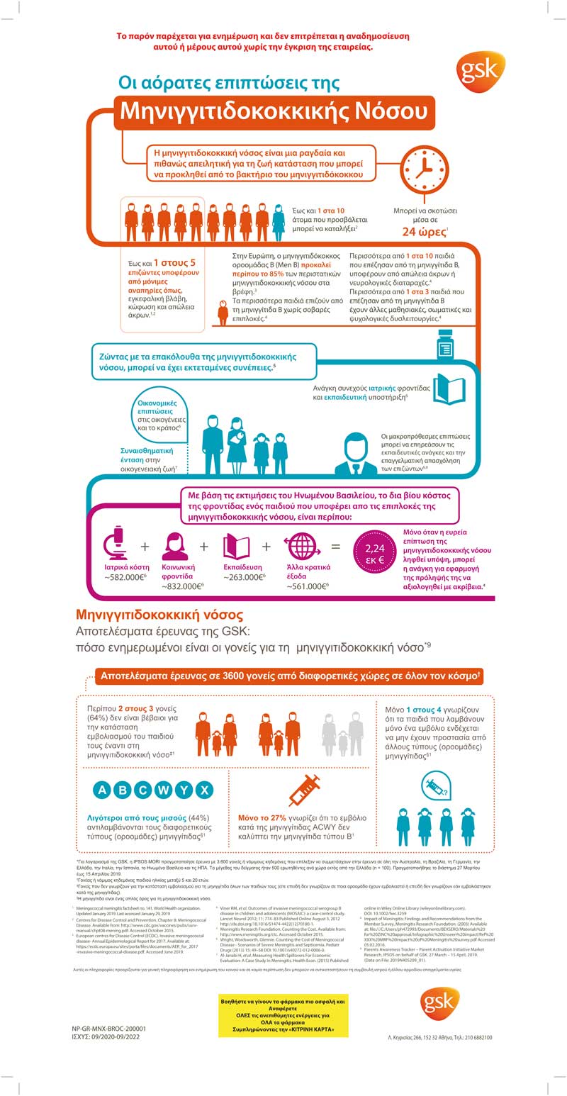 Η GSK ξεκινά στην Ελλάδα μια νέα παγκόσμια εκστρατεία ενημέρωσης του κοινού για την Μηνιγγιτιδοκοκκική Νόσο τύπου Β. Σκοπός της εκστρατείας είναι η ευαισθητοποίηση των γονέων αναφορικά με τη μηνιγγίτιδα Β, μια σπάνια αλλά με σοβαρές επιπλοκές και δυνητικά θανατηφόρο νόσο, ούτως ώστε να συμβουλευτούν τον Παιδίατρό τους για το πώς μπορούν να προστατέψουν τα παιδιά τους.