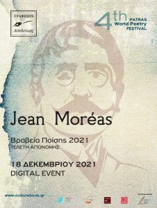 ΑΠΟΝΟΜΗ ΕΛΛΗΝΙΚΩΝ ΒΡΑΒΕΙΩΝ ΠΟΙΗΣΗΣ «Jean Moréas» για το έτος 2021: Πρόκειται για την ετήσια διοργάνωση κατά την οποία απονέμονται τα Βραβεία «Jean Moréas» για την ελληνική ποιητική τέχνη και την ελληνική ποιητική παραγωγή σε όλο της το φάσμα. Η απονομή θα πραγματοποιηθεί στο θέατρο Επίκεντρο+ με παρουσία συμμετεχόντων και κοινού.